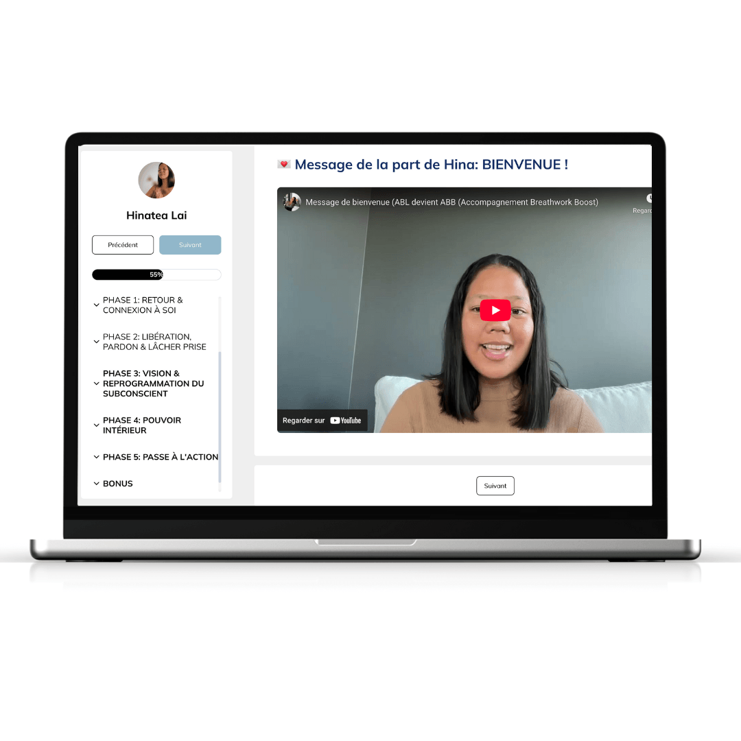 L'accès au portail de ACTION BOOST LAB aka l'Espace d'éveil intérieur, incluant le STEP BY STEP pour passer de DRAINED à DRIVEN grâce à des workbooks introspectifs, coachings, capsules de breathwork et autohypnoses pré-enregistrés.